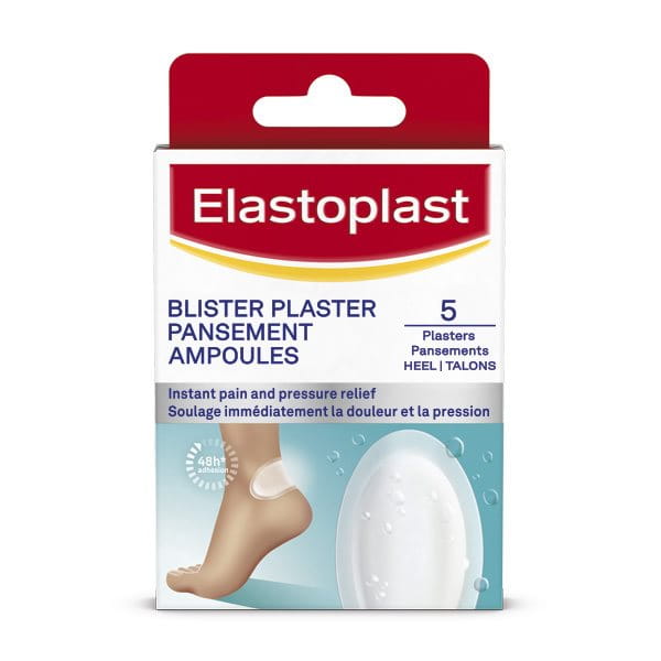 Elastoplast Blister Plaster relieves pain from pressure and friction immediately and creates an optimal moist wound healing environment that allows the wound to heal faster. During the healing process, the blister is sealed and protected from dirt and bacteria.